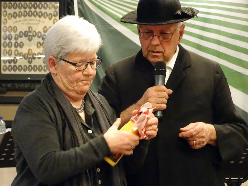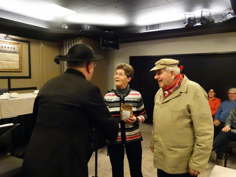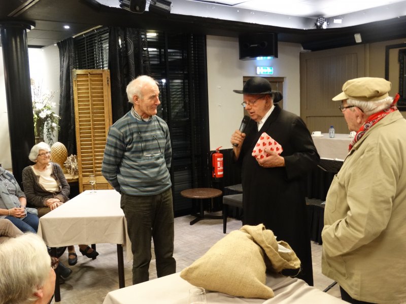 Mvr. Jo Meeuwissen-Timmers won de quiz, die tot slot werd gehouden en zij werd beloond met een dikke kus van René Bastiaanse.