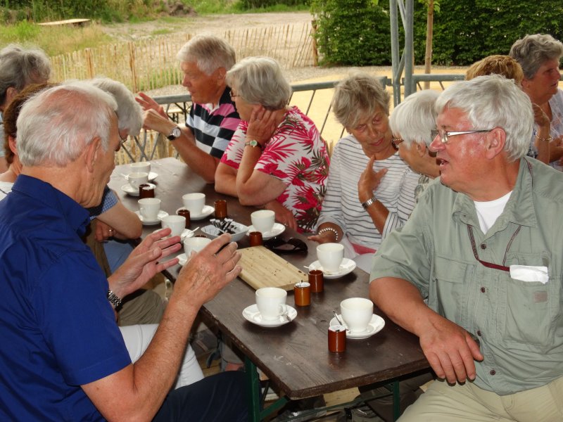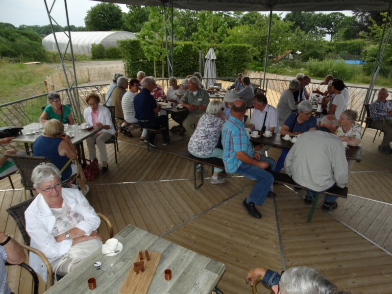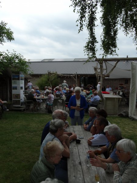 Natuurlijk lieten we ons de “gouden turfjes”, vergezeld door een slok “turfdruppelke” goed smaken. Het weer was perfect, het eten was prima en de gezelligheid kon niet beter. Dus een mooie dag voor iedereen!
